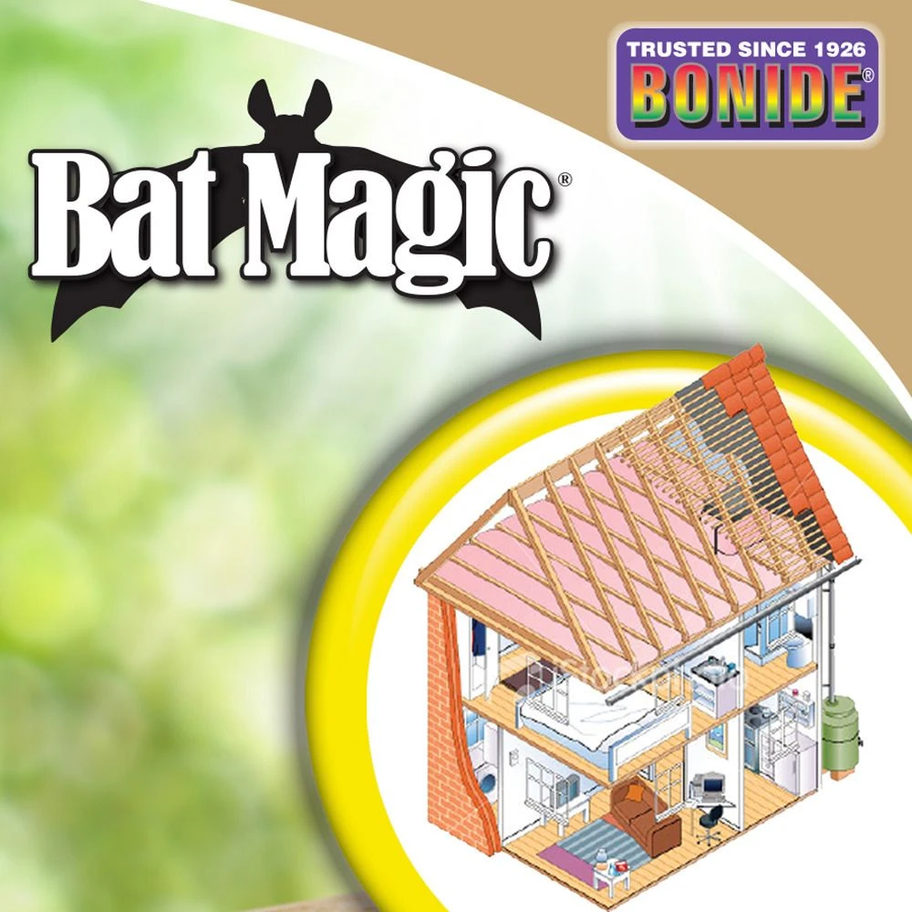 - PROTECTS YOUR HOME – Bat Magic Bat Repellent drives bats from confined areas such as attics, wall voids, crawl spaces, behind blinds, siding and shutters, eaves, soffits, chimneys, gable vents, sheds, louvers plus other dark, quiet confined spaces.