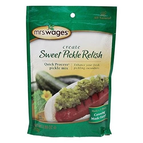 This mix contains herb and spice components and all you need to do is just add vinegar and sugar to create this delicious Sweet Pickle Relish. Serve during family gatherings or when grilling meat outside. Each pouch makes 5 pints. Before beginning any canning project, be sure to familiarize yourself with the process, the equipment you need and the ingredients. A boiling water bath method is used for the quick process recipes. The pickles are ready to eat 24 hours after preparation.