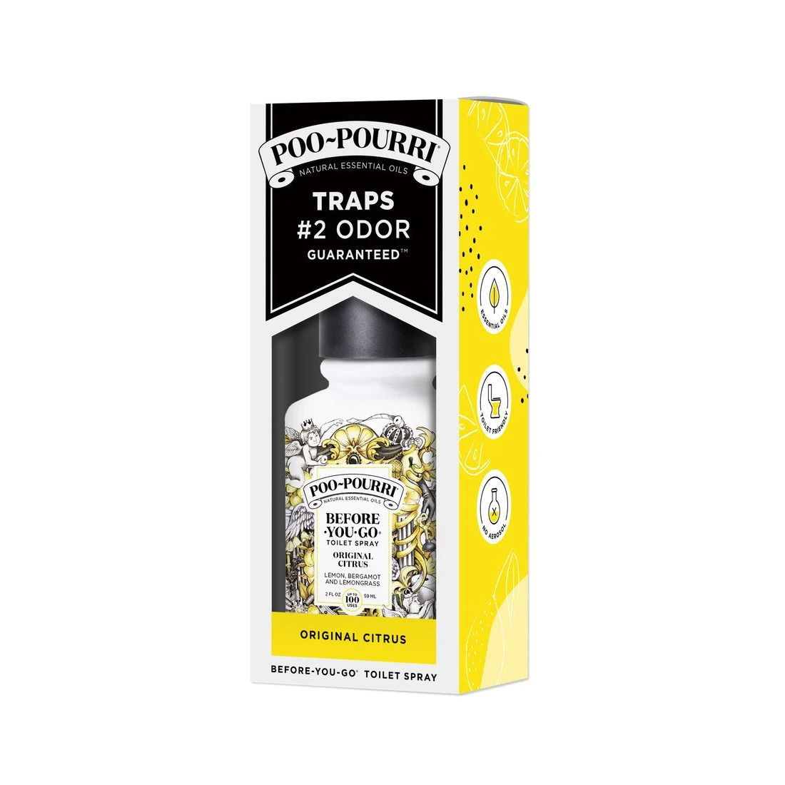 - Before you go toilet deoderizer, Original Citrus Scent, Protective layer of essential oils, Keeps embarrassing odors buried under water, 2 Oz. Poo-Pourri spray